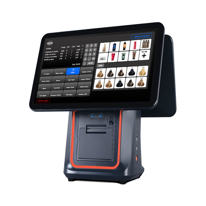Este TPV con impresora integrada y pantalla trasera para cliente es ideal para bares, restaurantes, cafeterías, tiendas y comercios que necesitan un equipo compacto, potente y fiable, capaz de agilizar el cobro y mejorar la experiencia del cliente.